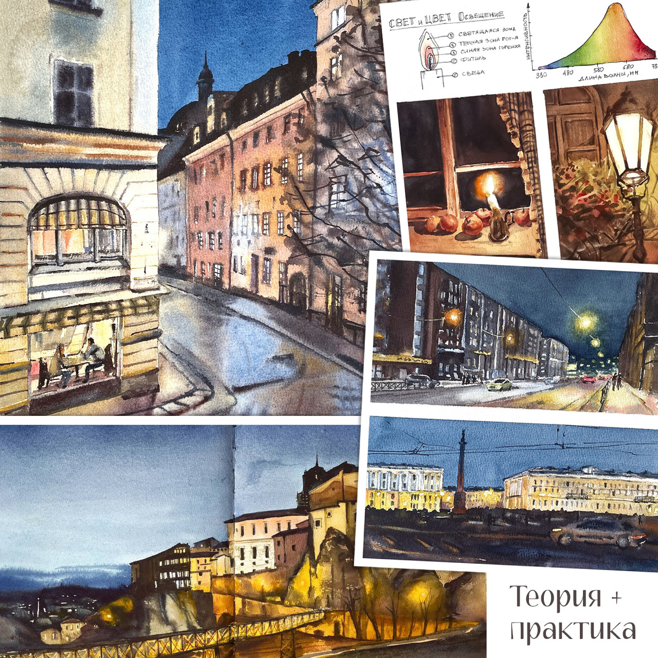 Практическая работа Видео-лекция "Цвет и Свет" - теория по освещению и цвету.Миниатюры и упражнения на отрисовку ночи и света. Минимум 4 работы 1 большая работа. 1 работа в формате пошаговки. 1 самостоятельная работа